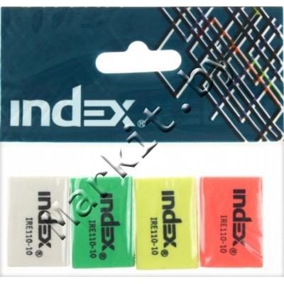 Набор ластиков Index, 26 x 18 x 8 мм, 4 шт., цветные (цена за 1 набор) Код: 33573