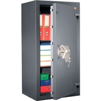 Этот вместительный сейф обладает 3-м классом устойчивости ко взлому, трехсторонней десятиригельной усиленной системой запирания, которую невозможно выбить или высверлить. Два мощных немецких замка запираются на ключ и также защищены от высверливания стальными вставками. Закрепив Форт 1368 KL+KL на полу, вы получите максимально безопасное место для хранения самых важных документов и архивов. Две внутренние полки и большой объем позволят разместить внутри все, что нужно.