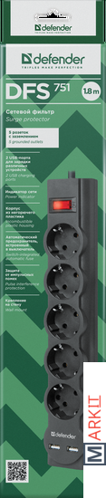 Сетевой фильтр Defender DFS 751 Код: 132866